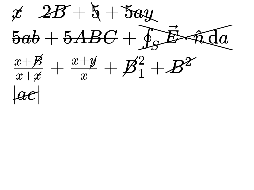 * Fix \cancel Fixes #1080. Improve `\cancel` in three ways: 1. Better lateral spacing. 2. Steeper `\cancel` lines on single characters. 3. Treat height and depth to match the `cancel` package behavior, not its documentation. * Update screenshots